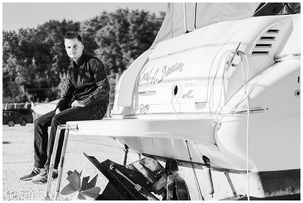 It was an absolutely gorgeous day for Austin’s senior session! We started off at their house with the Corvette and his pets. Then we headed over to Bedford Senior High School, where we spent time at the baseball diamonds, because that is where Austin spends most of his time. In his off time, he spends time with his family on their boat, so we headed over to the dock where they have their boat. After, we headed to downtown Toledo to one of my favorite locations!